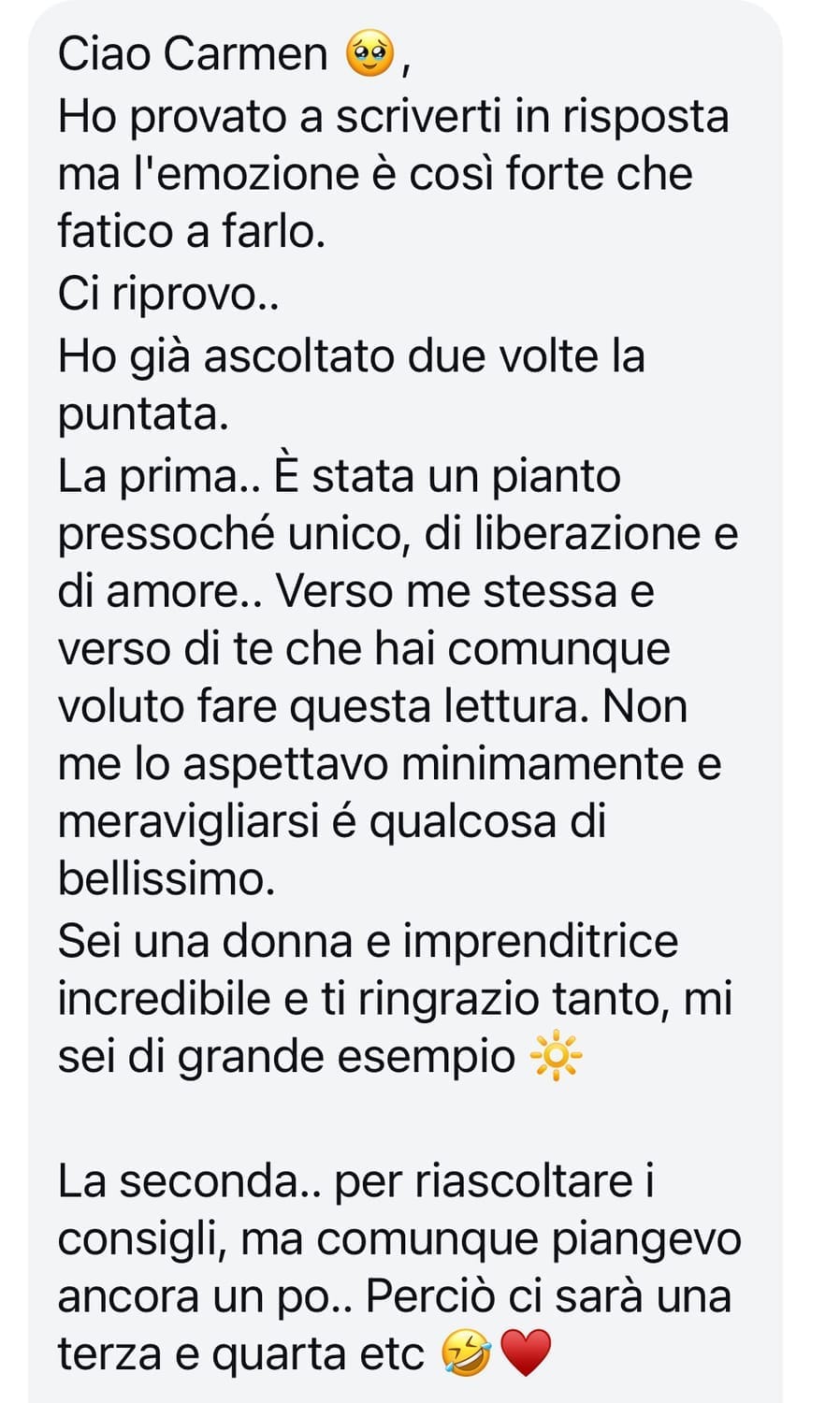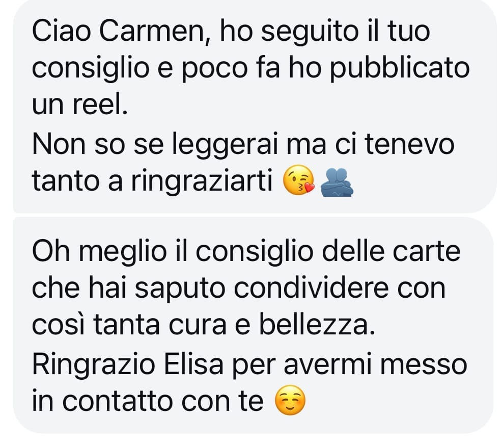 "Grazie carmen, perchè ci insegni non solo a gestire i social, ma anche quale atteggiamento avere. Ci stimoli ad essere positivi e ad avere più consapevolezza nelle nostre possibilità!! Sei una forza e ti vogliamo bene!"