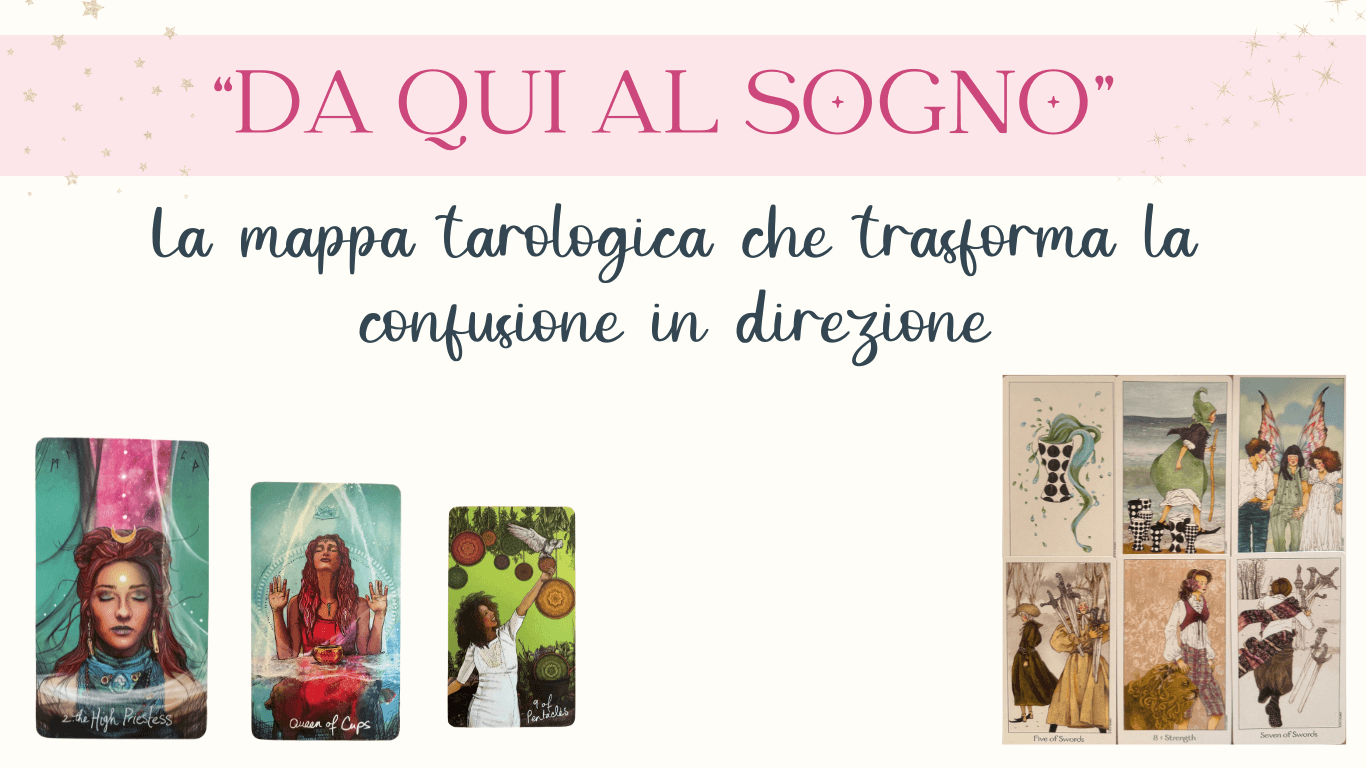 "Da qui al Sogno" è un percorso entry level per farti accedere al mio mondo, ma se senti di aver bisogno di sbloccare più aspetti della tua personalità e della tua professione, forse potrebbero esserti utili altri percorsi come LA STANZA SEGRETA, dove uniamo letture di Tarocchi e confronto quotidiano sui tuoi dubbi, per arrivare a creare una nuova versione di te.